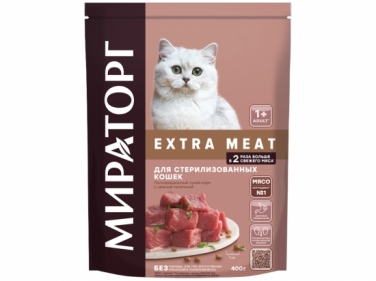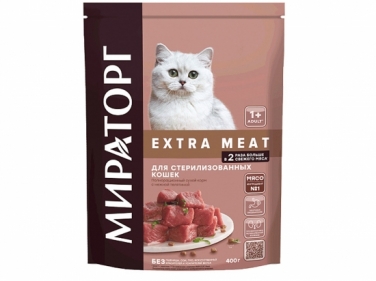 Extra Meat չոր կեր հորթի նուրբ մսից,ստերիլիզացված կատուների համար, 400գր,1+