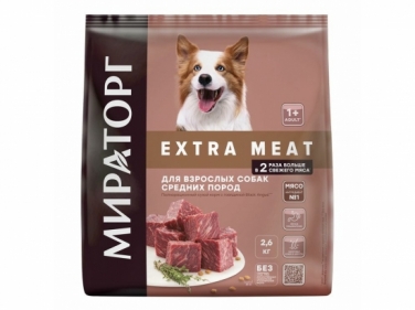 Extra Meat չոր կեր տավարի մսով Black Angus, միջին ցեղատեսակի շների համար 2,6կգ,1+