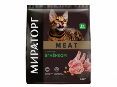 Լիարժեք չոր կեր՝ MEAT հյութալի գառան մսով, 1 տարեկանից բարձր չափահաս կատուների համար, 1.5 կգ