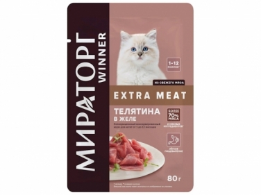 Winner extra meat պահածոյացված հորթի ժելե,1-12 ամսեկան կատուների համար 80գր