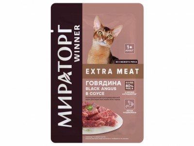 Պահածոյացված Black Angus տավարի միս սոուսում, բոլոր ցեղատեսակի կատվի կեր 80գր,1+ Winner extra meat