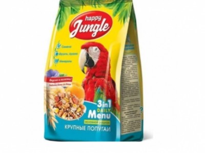 Happy Jungle կեր խոշոր թութակների համար,որը անհրաժեշտ է թռչունների ակտիվ կյանքի համար։ Պարունակում է բոլոր անհրաժեշտ տարրերը,որոնք անհրաժեշտ են թութակների առողջության համար։ Հիանալի հավելում է կերին, հագեցած է վիտամիններով և բարձրացնում է իմունիտետը, ամրացնում է ոսկորները և ապահովում փետուրների հիանալի տեսքը։